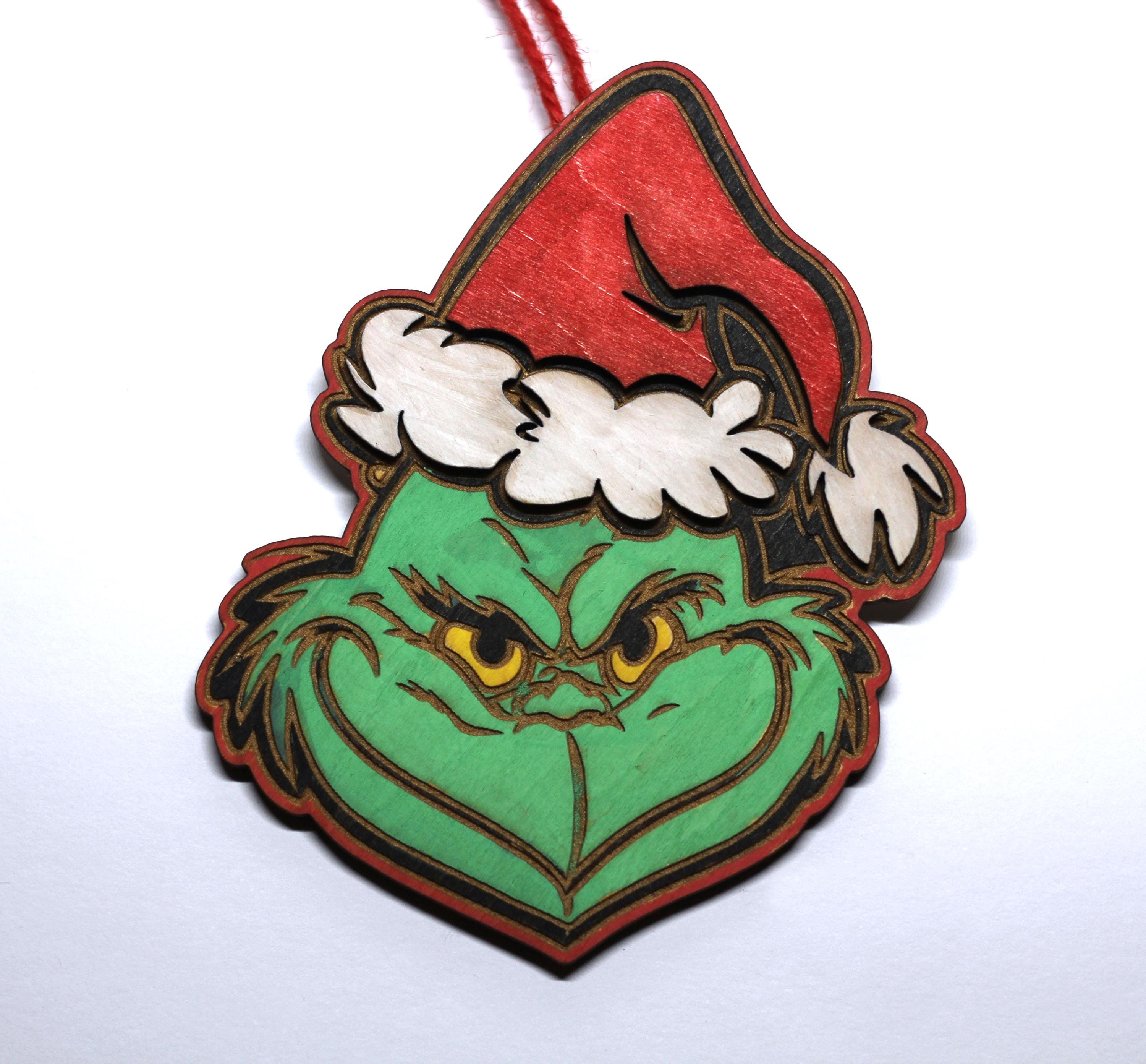 Grinch handcrafted wood ornament , made from quality woods, laser etched, then hand painted and assembled in Southern California by the original artist. Can be used year round. Perfect Gift for anyone this Holiday Season.