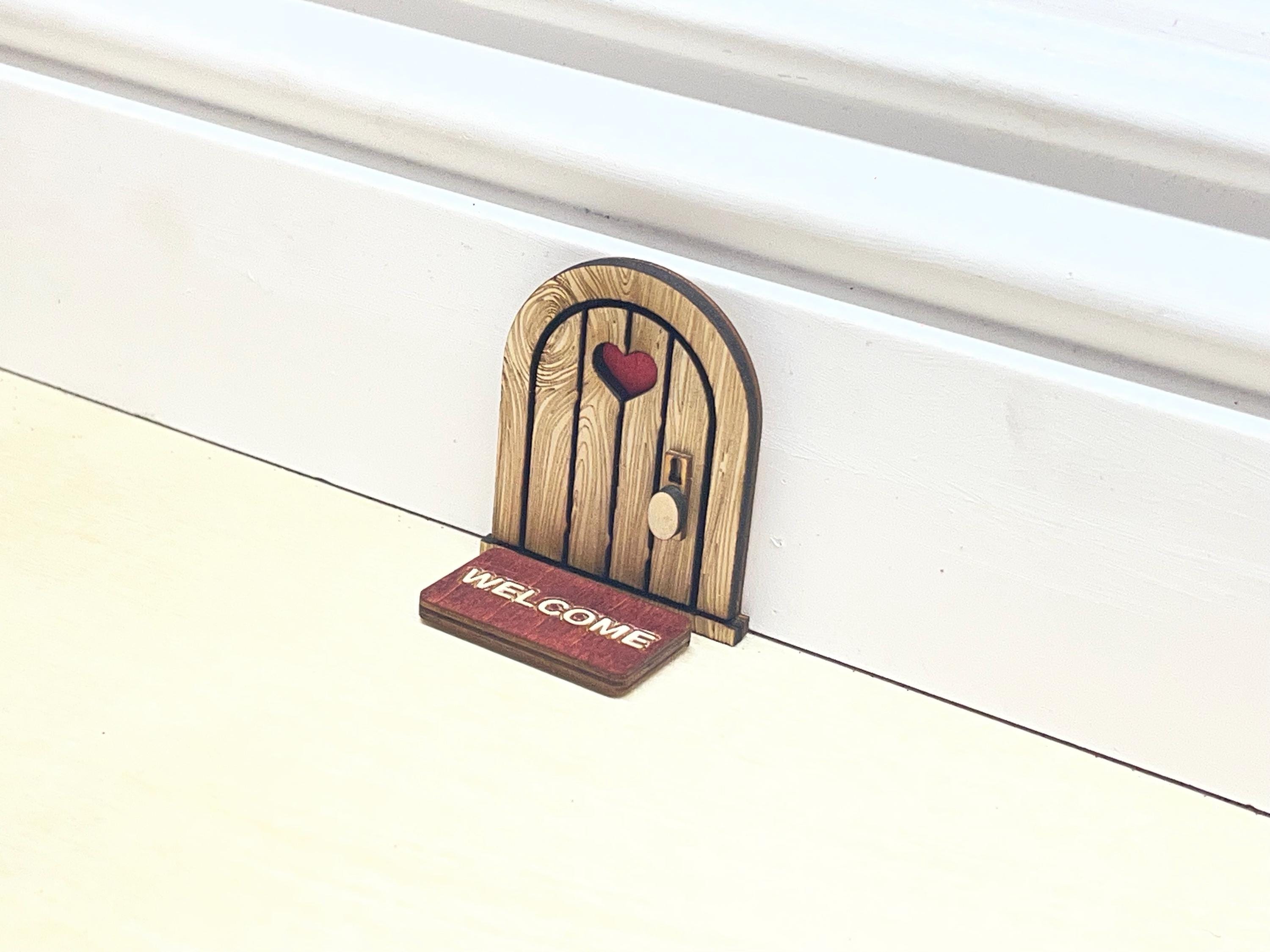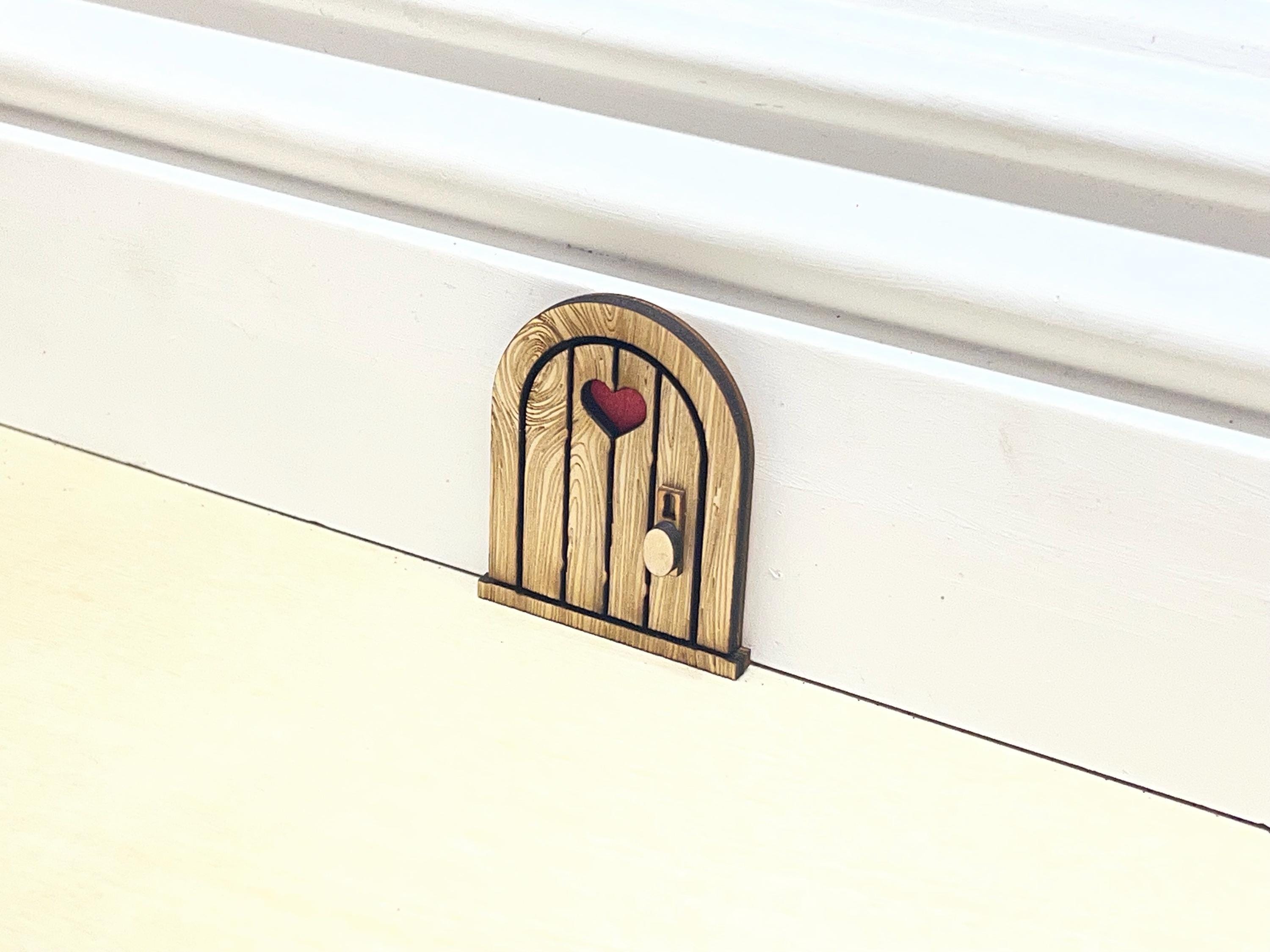 Cute Lil Mouse Door - Love Door Edition adds a bit of joy and whimsy to any home and smiles on the faces of family and guests. Using reusable none marking adhesive pads the Mouse Door can be applied and repositioned multiple times. Door can be ordered in two sizes either 2 or 3 inches tall, allowing it to fit almost all sized baseboards. Makes a great game for young ones to find. Made from quality basswood, laser etched, cut and handcrafted by the original designer. Can be used a Mouse/Fairy/Gnome Lil folks door. Makes an awesome whimsical gift. One of many styles available on our Etsy store, harvestdecorations.com and mousedoors.com. Follow us on socials: @harvestdecorations for latest releases. Note- door does not open it is for decoration.